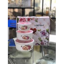 * Bộ 3 bát sứ có nắp hút chân không- Bộ bát được làm từ sứ với lớp men sáng bóng, họa tiết đẹp mắt, giúp không gian bếp thêm hiện đại và các bữa ăn thêm ngon miệng