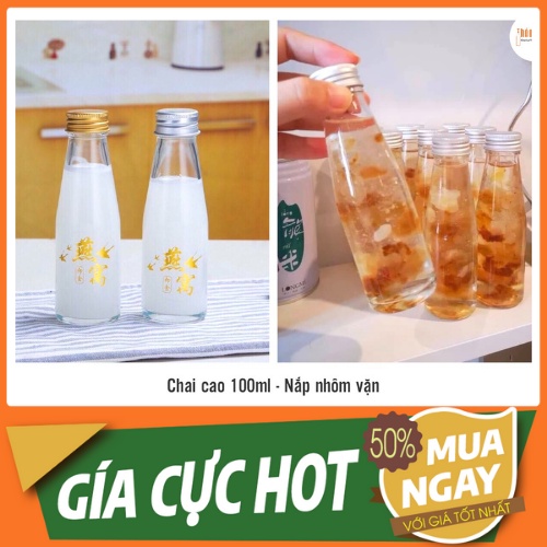 Nhà cửa & Đời sống > Bộ đồ bàn ăn > Bình nước & phụ kiện || ❣️[ẢNH THẬT]❣️ CHAI THỦY TINH TRÒN 100ML NẮP NHÔM - ĐỰNG DẦU ĂN, NƯỚC MẮM....Còn hàng