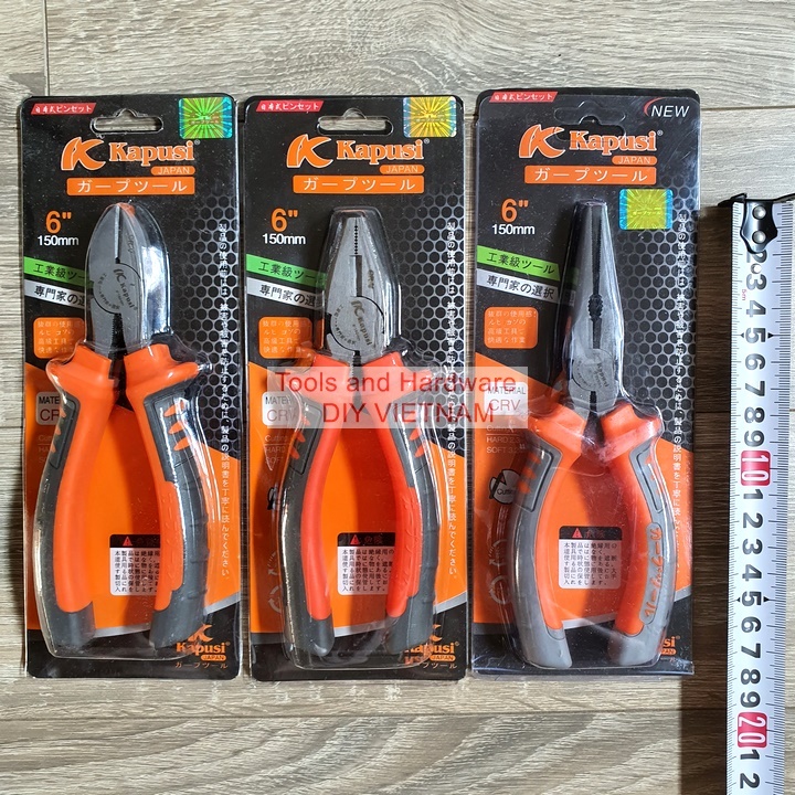 Nhà cửa & Đời sống > Dụng cụ & Thiết bị tiện ích > Dụng cụ > Kìm || [Ảnh thật] [Chính hãng] Bộ 3 Kìm điện, Kìm Cắt, Kìm nhọn hãng Kapusi Japan cao cấp cỡ 6 inch/150mm, Bảo hành 12 thángCòn hàng