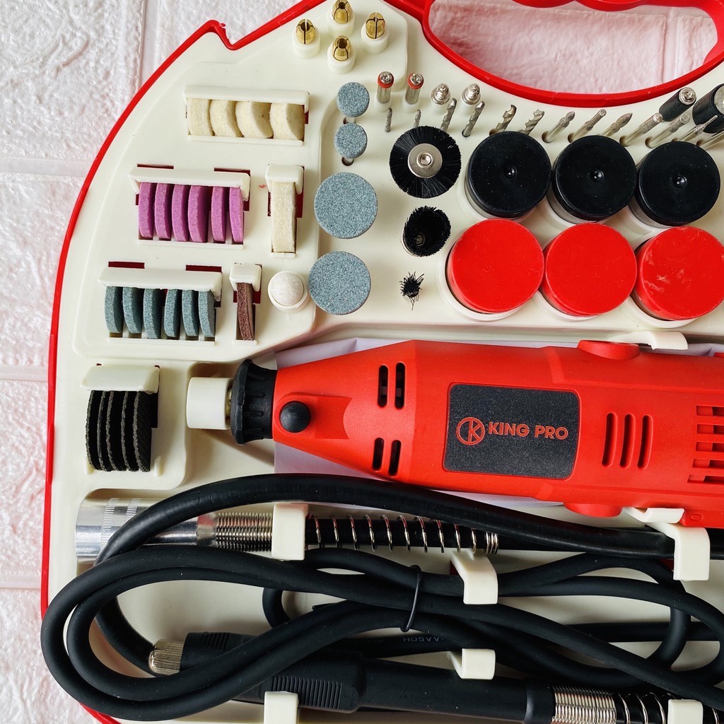 Nhà cửa & Đời sống > Dụng cụ & Thiết bị tiện ích > Dụng cụ > Cưa, máy cắt & máy mài || [Ảnh thật] [Chính hãng] Bộ Máy Khoan Mài cắt Khắc mini Đa Năng Kingpro 200W 6 Tốc Độ Tặng 100 chi tiếtCòn hàng