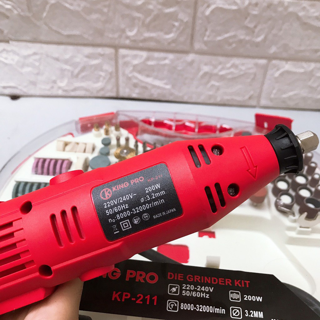 Nhà cửa & Đời sống > Dụng cụ & Thiết bị tiện ích > Dụng cụ > Cưa, máy cắt & máy mài || [Ảnh thật] [Chính hãng] Bộ Máy Khoan Mài cắt Khắc mini Đa Năng Kingpro 200W 6 Tốc Độ Tặng 100 chi tiếtCòn hàng