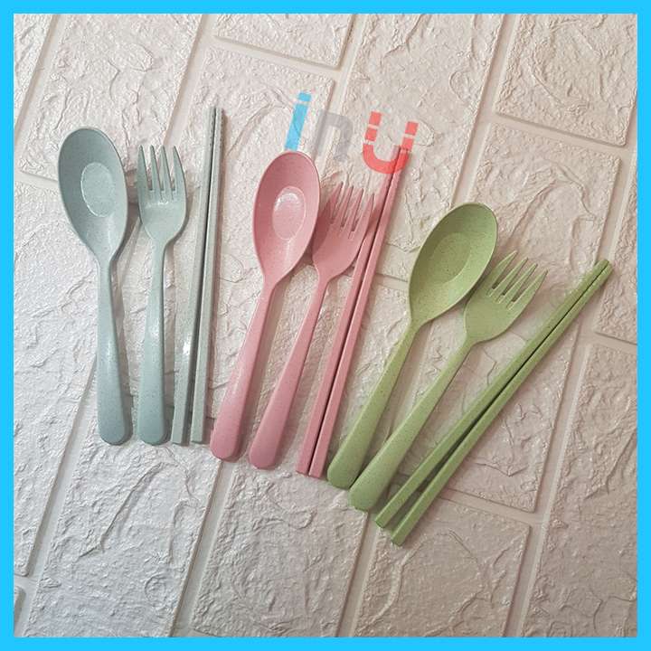 *** Kích thước:muỗng 16cm, nĩa 15.5cm, đũa 18cm*** Chất liệu: nhựa lúa mì