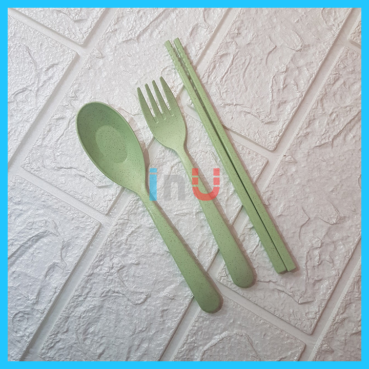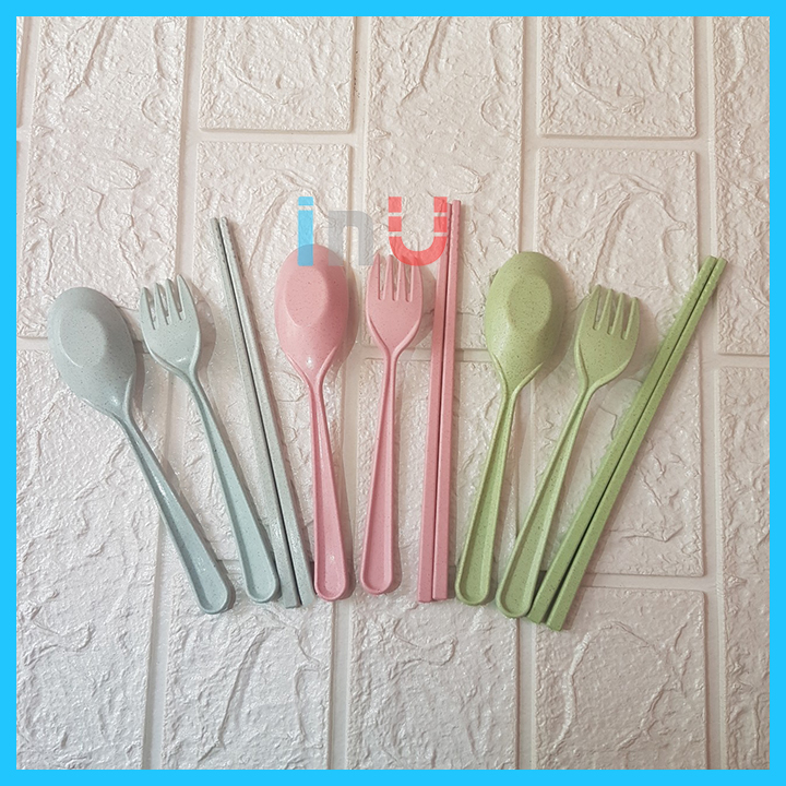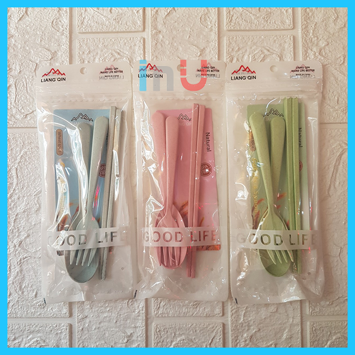 [Ảnh thật] HCM - Bộ muỗng đũa nĩa lúa mì thiên nhiên tiện lợi mang ăn trưa, đem du lịch, công tác