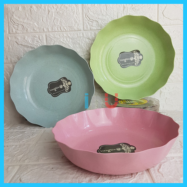 Giới thiệu [Ảnh thật] HCM - Đĩa lúa mì tròn hoa 21.5cm lòng sâu cao 5cm làm salad, bán trái cây dĩa