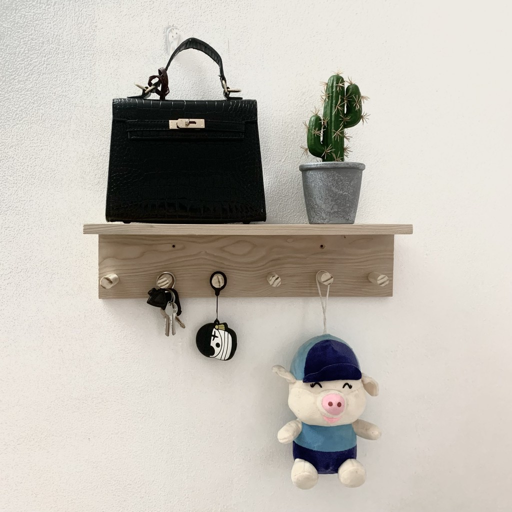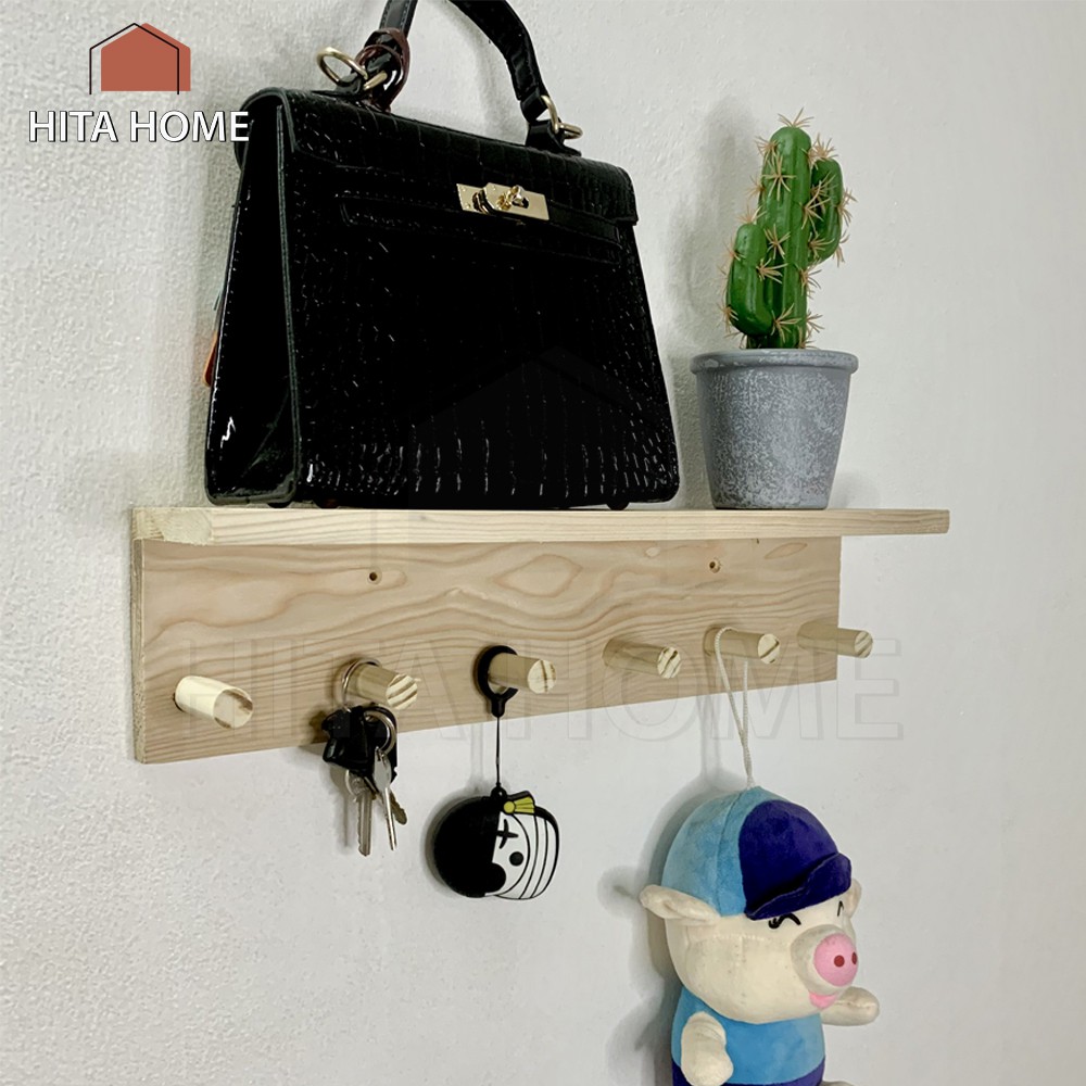 [Ảnh thật] Kệ gỗ treo tường đa năng (móc chìa khóa, quần áo, túi xách...)