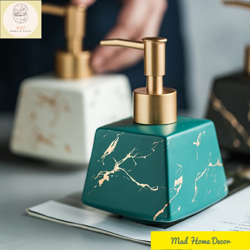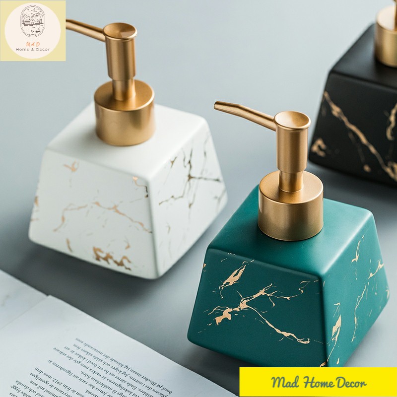 Giới thiệu (Ảnh Thật) Lọ Sứ Đựng Sữa Tắm, Dầu, Gội Nước Rửa Tay Vân Đá Cao Cấp Dáng Vuông