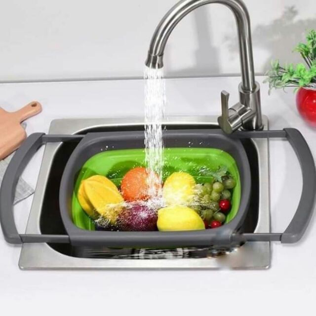 Nhà cửa & Đời sống > Dụng cụ chăm sóc nhà cửa > Chậu, xô & gáo nước || [Ảnh Thât][Loại Cao Cấp] Bộ 2 Rổ Gấp Gọn Co Giãn Để Bồn Rửa BátCòn hàng