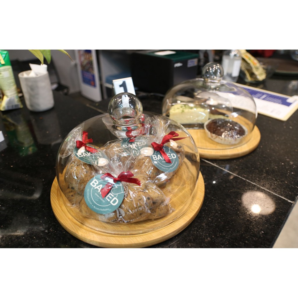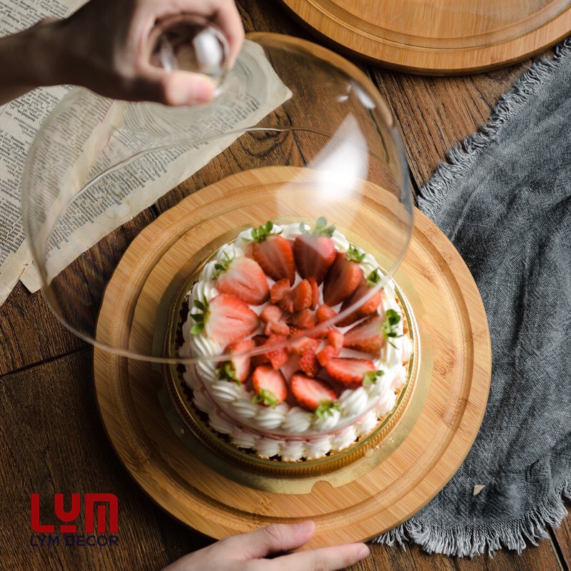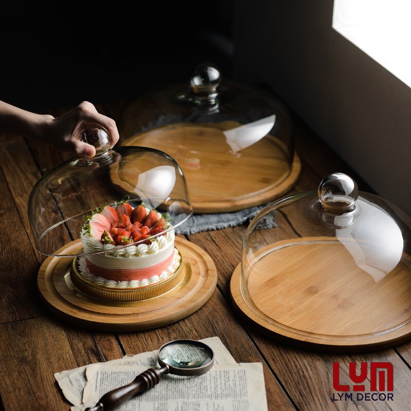 Nhà cửa & Đời sống > Dụng cụ nhà bếp > Dụng cụ nướng & trang trí bánh || (ẢNH THẬT-SALE SHOCK) Khay đựng bánh có nắp úp kính kèm khay gỗ tre - trưng bánh, đựng bánh sinh nhật-Hàng xuất ÂuCòn hàng