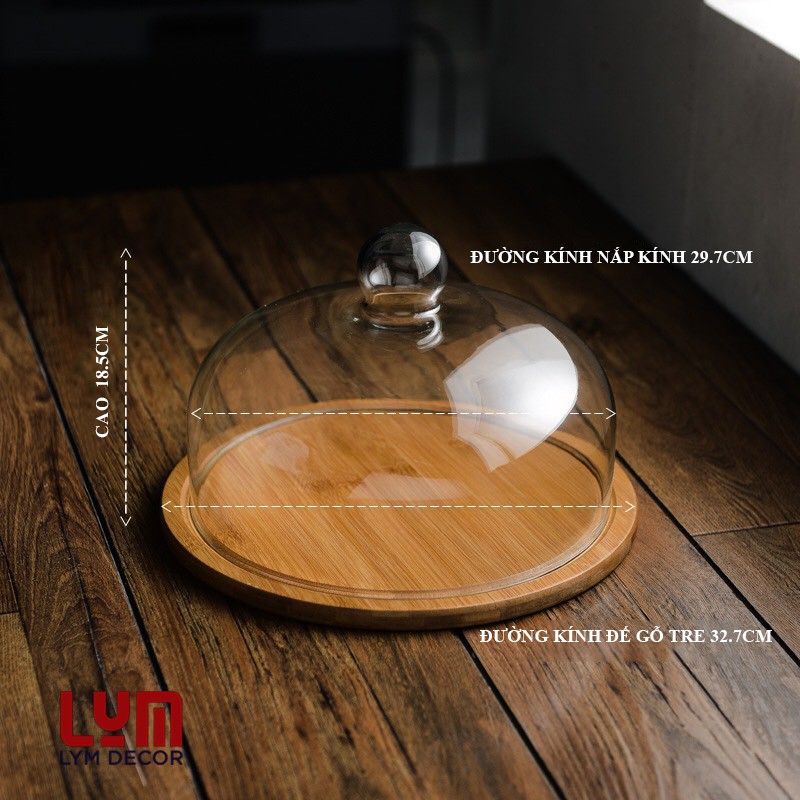 Giới thiệu (ẢNH THẬT-SALE SHOCK) Khay đựng bánh có nắp úp kính kèm khay gỗ tre - trưng bánh, đựng bánh sinh nhật-Hàng xuất Âu