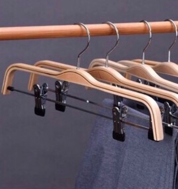 Nhà cửa & Đời sống > Sắp xếp nhà cửa > Mắc áo || [Ảnh thật] Set 10 móc kẹp quần áo. Hàng loại 1 bền đẹp, thiết kế móc gỗ tinh tế, đầu móc và kẹp kim loại chắc chắnCòn hàng