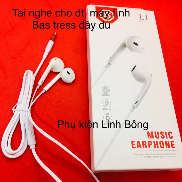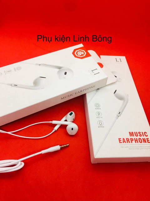 (Ảnh thật) TAI NGHE ĐIỆN THOẠI CÓ DÂY EARPHONE L1 màu trắng phù hợp tất cả các dòng điện thoại