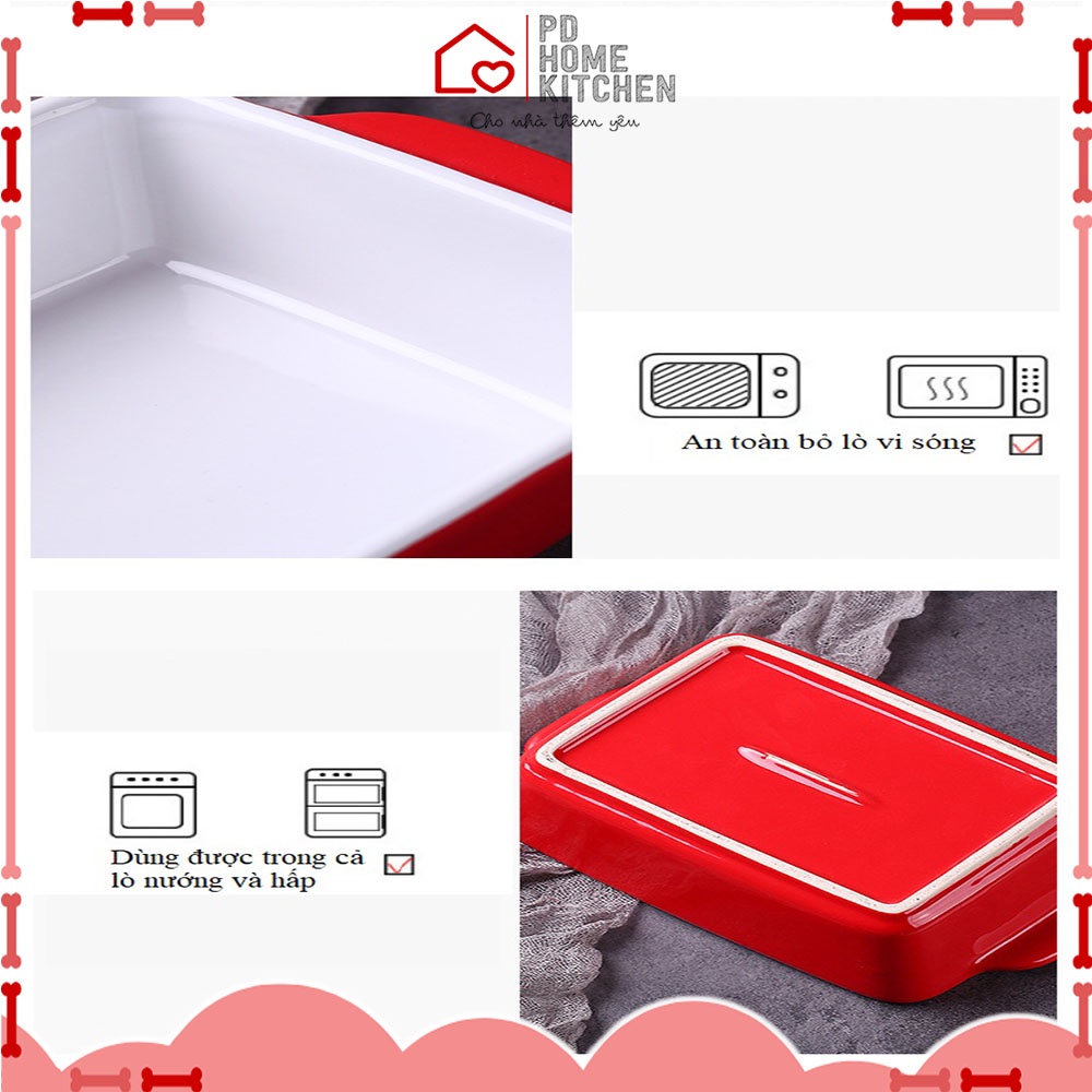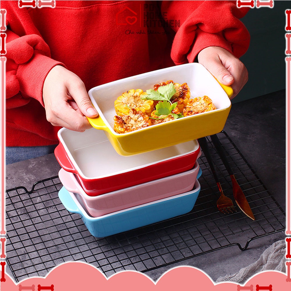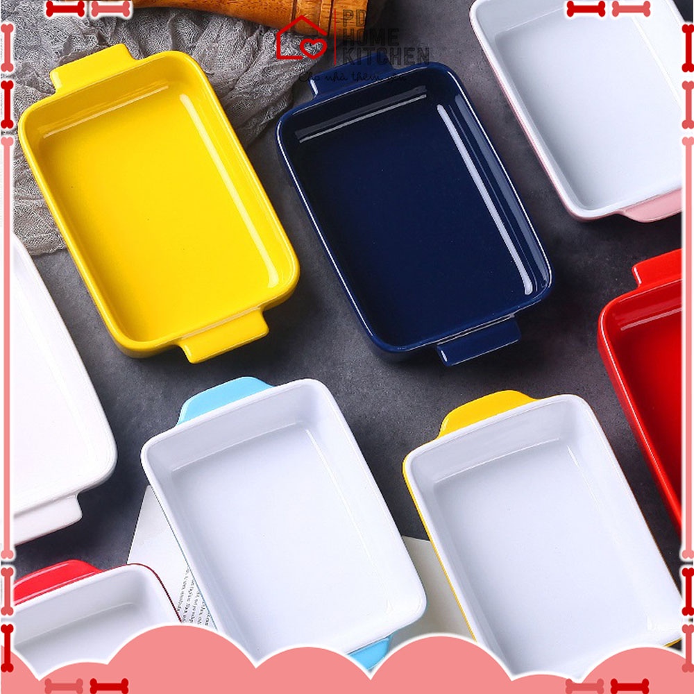 [ẢNH THẬT] TÔ KHAY SỨ HÌNH CHỮ NHẬT nướng bánh có quai cầm bỏ lò vi sóng, lò nướng, làm bánh bếp 500ml - CÓ SẴN
