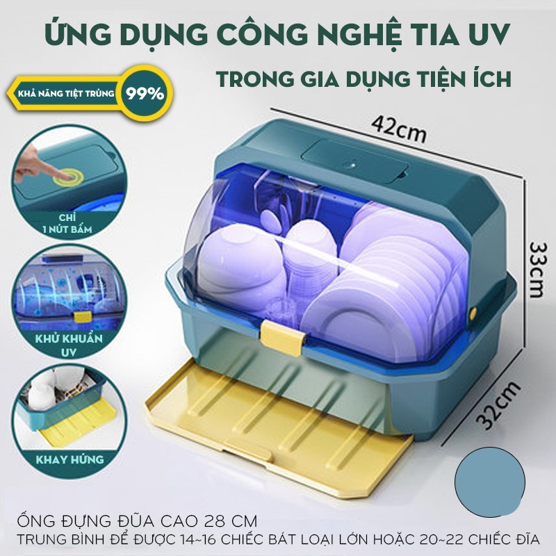 <ảnh thật>Tủ đựng bát đĩa khử trùng bằng tia UV Giá úp bát có nắp đậy chống bụi bẩn có khay thoát nước🍎 Kích thước: 42x33x32cm