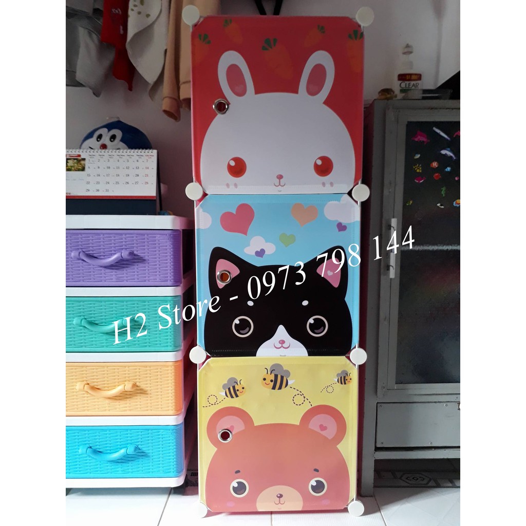 [ẢNH THẬT] TỦ NHỰA LẮP GHÉP 3 Ô VÁCH HỒNG HÌNH NGỘ NGHĨNH (THÚ NỬA MẶT C) ĐỂ ĐỒ ĐA NĂNG THÔNG MINH sâu 37cm