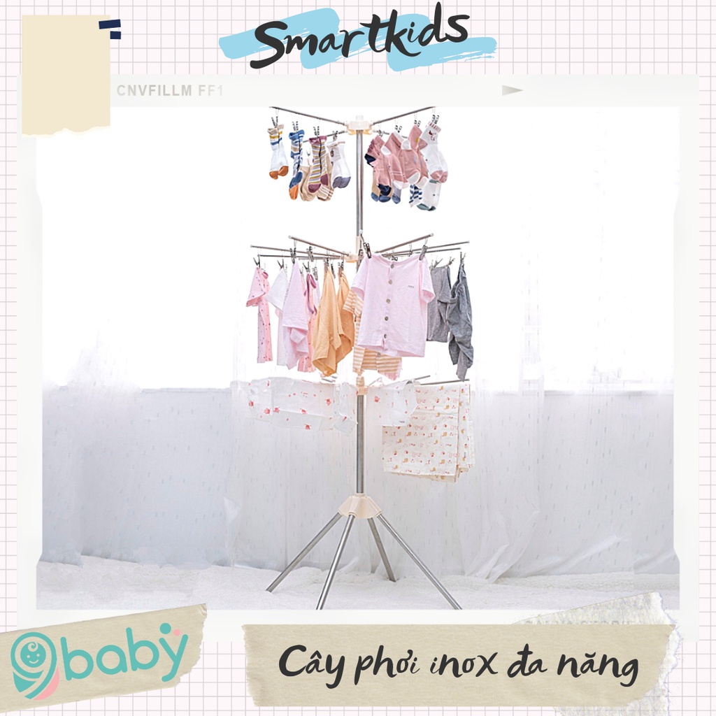 [ẢNH THẬT + VIDEO] Cây phơi đồ đa năng inox 56 móc siêu tiện dụng 9BABY