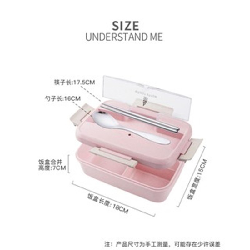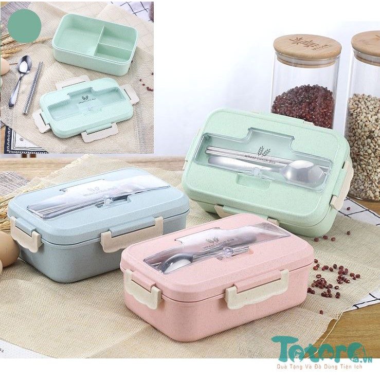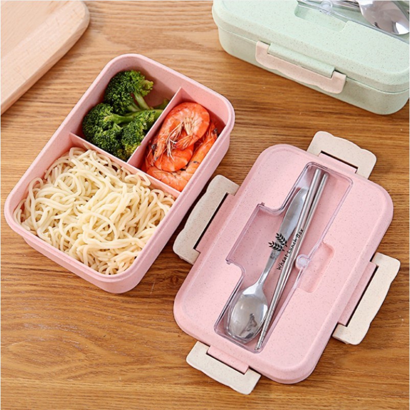 [Ảnh Thật+Video] Combo 2 Hộp Cơm Lúa Mạch 3 Ngăn Kèm Đũa Thìa Inox Cao Cấp Tiện Dụng Cho Dân Văn Phòng Và Sinh Viên