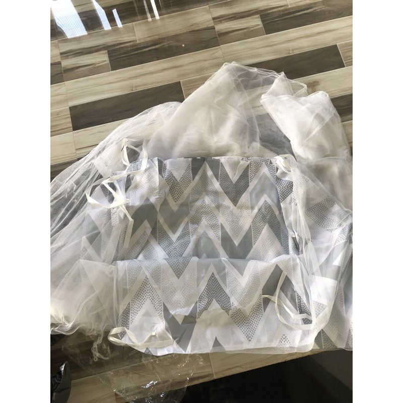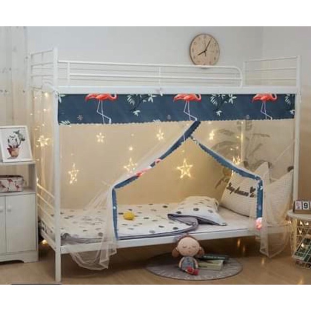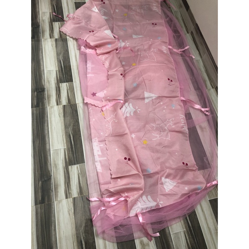Lưu ý: rèm có miếng vải che phía nóc mùng nên không lo bụi bặm ạ. Rèm trơn thì không có nha mọi người.