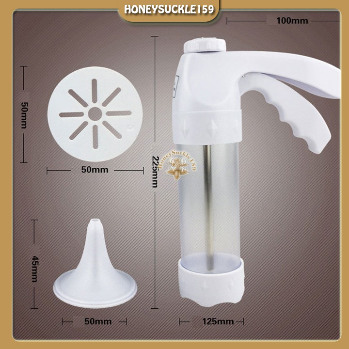 Kích thước của bộ cookies press: 23cm*15.2cm*6cm, thiết kế với tay bóp chắc chắn, dễ sử dụng.