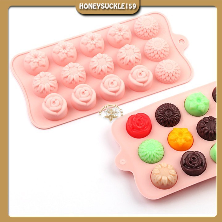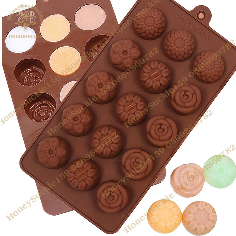 Khuôn Silicon 4D Đổ Socola/Thạch/Đá/Kẹochipchip/Pudding Hình 15 HoaChất liệu: Silicon
