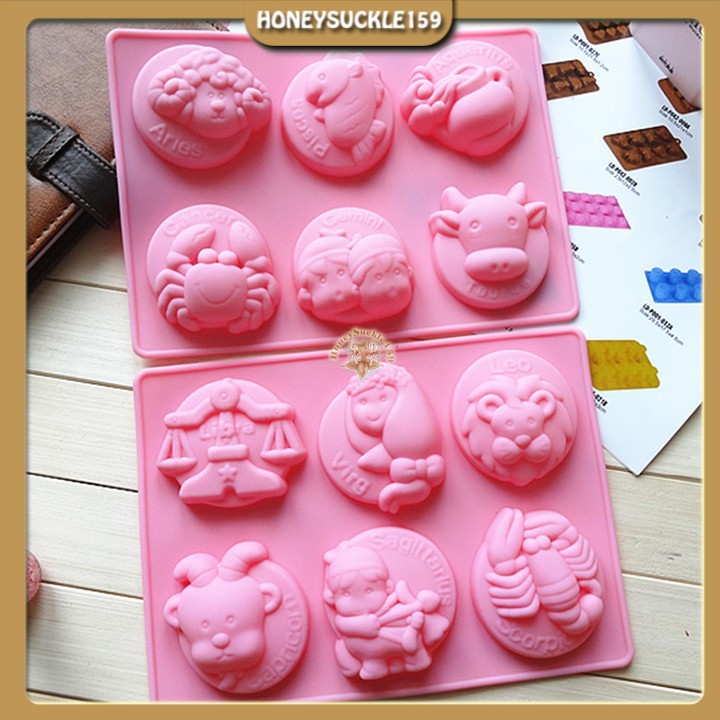 Khuôn Silicon Đổ Socola/Thạch/Đá/Kẹochipchip/Pudding Hình 12 Cung Hoàng Đạo