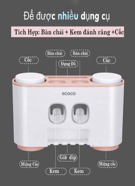 Nhà cửa & Đời sống > Đồ dùng phòng tắm > Kệ đựng bàn chải, kệ nhả kem đánh răng || [Ảnh Thật+Video][Loại Cao Cấp Không Khoan Tường] Nhả Kem Đánh Răng Tự Động ECoCo 4 Cốc 2 Tuýp Kem Sạch Sẽ Và Tiện LợiCòn hàng