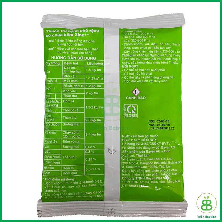 - Thuốc phòng bệnh phổ rộng, dạng bột thấm nước, có độ phủ tốt và có độ bám dính cao trên bề mặt lá khi phun, còn cung cấp vi lượng kẽm(Zn++) cho cây trồng giúp phát triển xanh tốt, tăng năng suất và chất lượng nông phẩm.