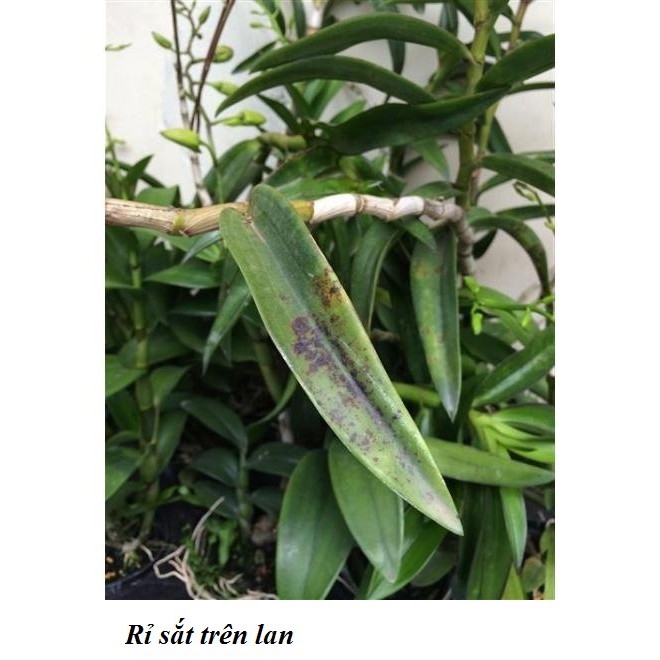 Bệnh rỉ sắt Nguồn bệnh là Hemilleia, thường gọi là bệnh đốm cát. Nguồn bệnh xâm nhập rồi thì mặt sau của phần chót lá xuất hiện các nốt to nhỏ lồi lên có màu nâu gỉ sắt trông như hạt vừng. Vài ngày sau, nốt lồi đó vỡ ra, bên trong có phấn màu sắt (Bào tử phân bào của nấm bệnh) và bay theo gió phát tán gây bệnh. Do đốm bệnh thời kỳ đầu rất nhỏ, màu sắc không rõ rệt lại ở mặt sau của chót lá nên khi nhìn mặt lá rất khó phát hiện, cần lật mặt dưới lá để kiểm tra. Nếu đợi đến khi đốm bệnh xuất hiện ở mặt trên lá thì bào tử vi khuẩn đã phát tán rộng.