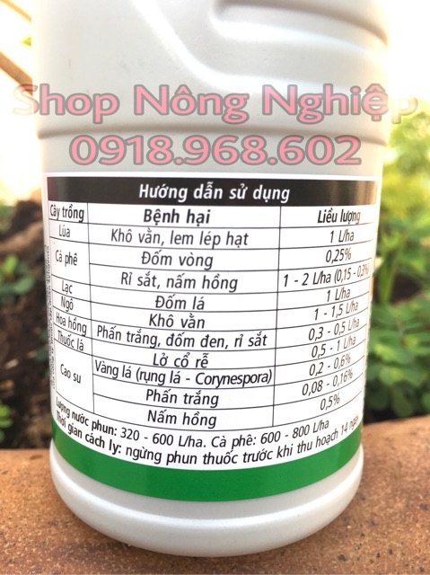 👉Công dụng: khô vằn, đốm vòng, rỉ sắt, nấm hồng, đốm lá, đốm đen, lỡ cổ rễ, vàng lá rụng lá,....hại hoa cây cảnh, cây ăn trái và các loại cây khác.👉Hướng dẫn sử dụng: 15-20ml/20 lít nước phun ướt đều cây trồng, phun vào sáng sớm hoặc chiều mát.
