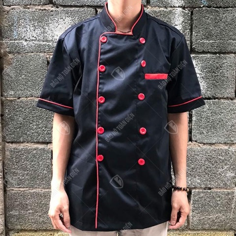 Áo bếp ngắn tay màu đen mẫu đẹp dành cho Nam và Nữ cao cấp. Áo Đầu Bếp Đồng Phục Nhà Hàng.