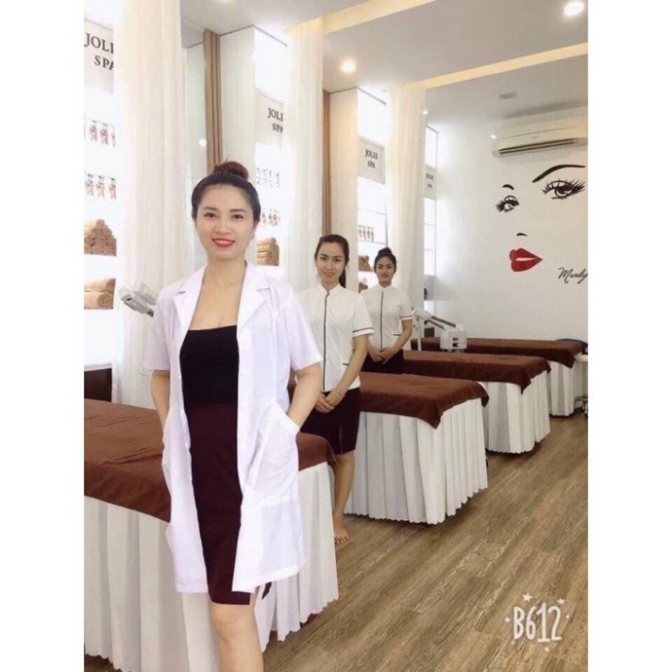 Giới thiệu Áo blue trắng ngắn tay ôm mông dùng trong spa thẫm mỹ viện