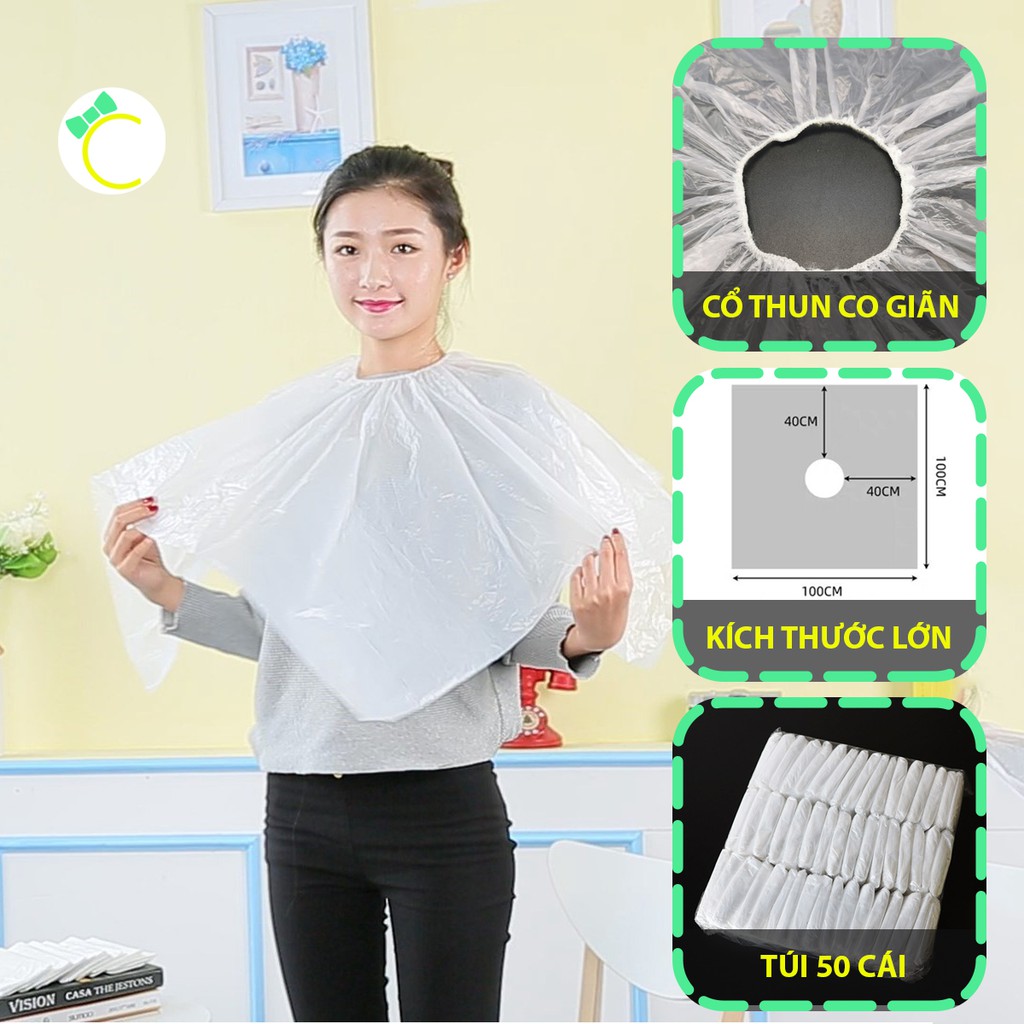 Áo choàng làm tóc bằng nylon dùng 1 lần tiện lợi - Túi 50 cái cực nhiều - Cami - CMPK157