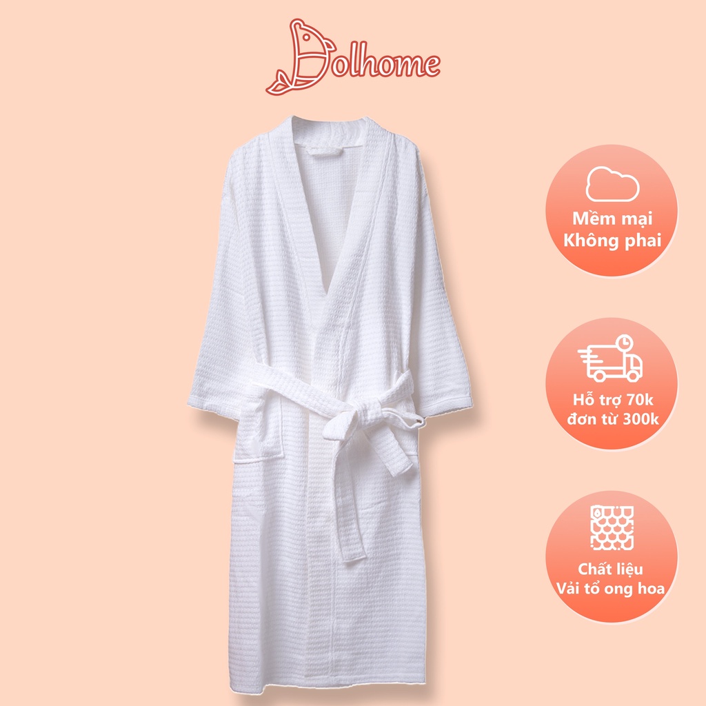 Áo choàng tắm Dolhome chất liệu tổ ong hoa mềm mại thấm hút và nhanh khô, khăn choàng tắm nam nữ thu đông