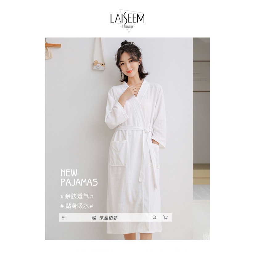 Giới thiệu Áo choàng tắm Dolhome chất liệu tổ ong hoa mềm mại thấm hút và nhanh khô, khăn choàng tắm nam nữ thu đông