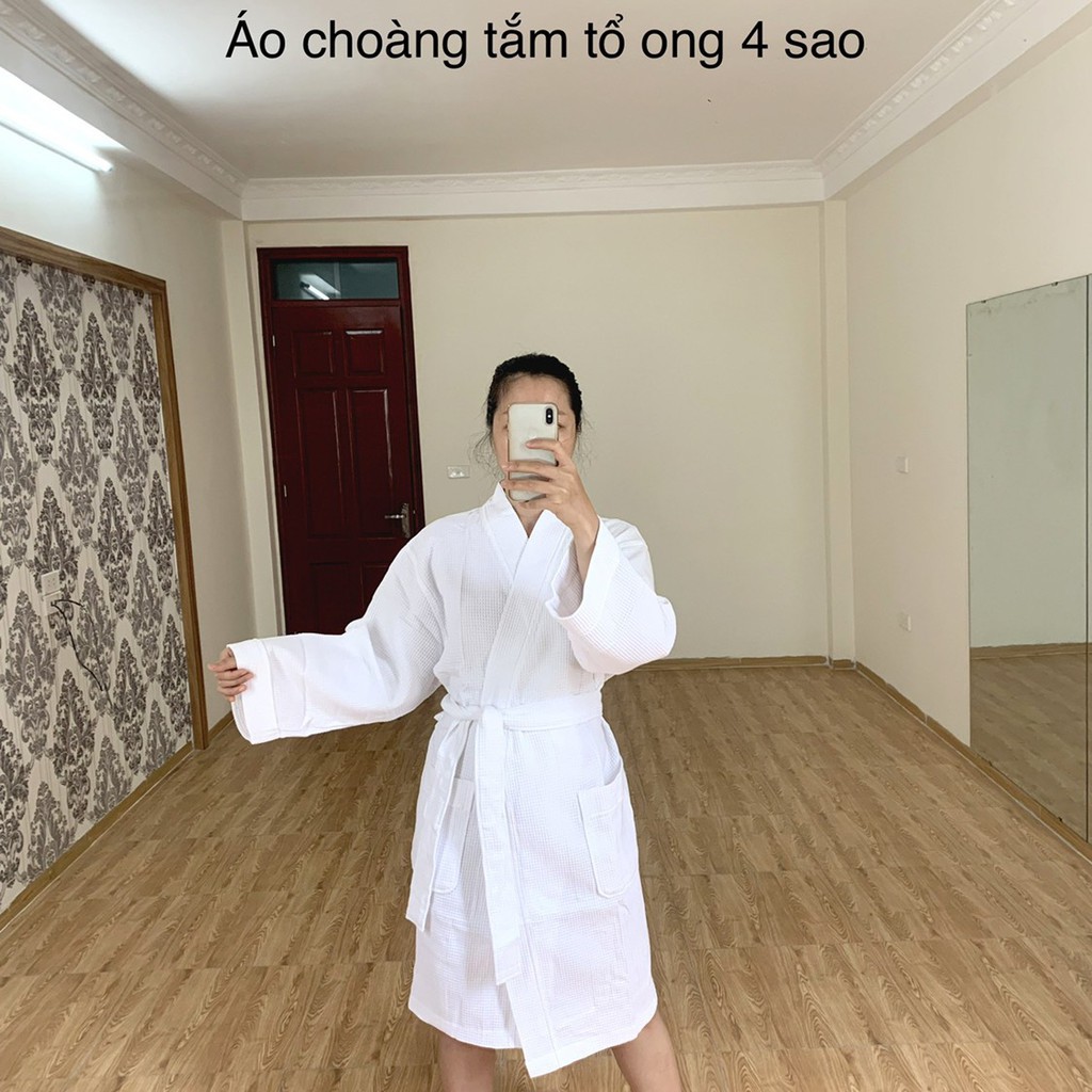ÁO CHOÀNG TỔ ONG (MÀU TRẮNG) CAO CẤP 100% COTTON THIÊN NHIÊN, chất liệu mềm mại không mẫn cảm với làn da nhạy cảm, có độ thấm hút tốt, phù hợp cho mọi đối tượng người dùng.Áo choàng tắm cao cấp được sản xuất trên dây chuyền hiện đại công nghệ Châu Âu với quy trình khép kín từ công đoạn sợi tự nhiên – dệt – thành phẩm và cuối cùng cho ra những sản phẩm áo choàng với chất lượng tốt nhất, tính năng vượt trội.