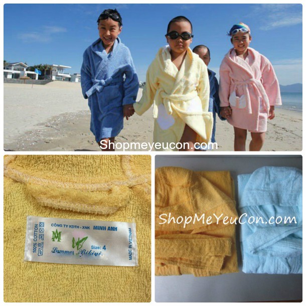 - Màu sắc nhẹ nhàng: Màu sắc chủ đạo của những mẫu áo choàng tắm lần này Shop mang tới đó là : Hồng, xanh, và vàng. Đây là những sắc màu trung tính nhẹ nhàng. Con yêu của bạn sẽ trông như những chú gấu bông tinh nghịch vậy