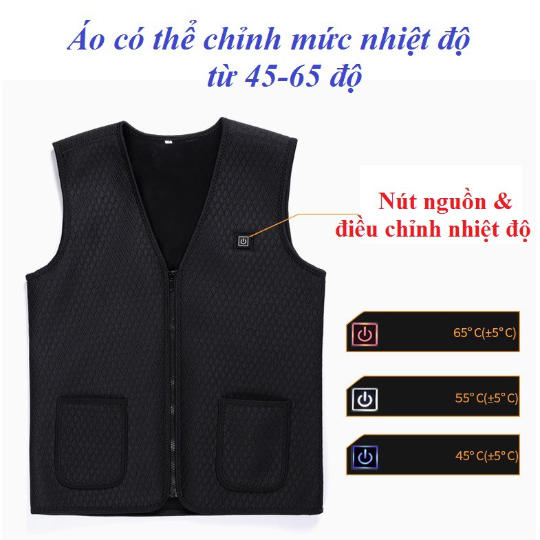 Áo ghi lê sưởi ấm sử dụng điện từ pin dự phòng [KO kèm PIN], điều chỉnh nhiệt độ từ 45- 65 độ