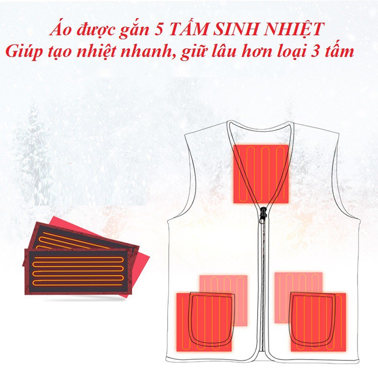 🔥Áo gồm 5 TẤM sưởi giữ nhiệt tại các vị trí thiết yếu, giúp sưởi nhanh giữ lâu hơn loại 3 tấm
