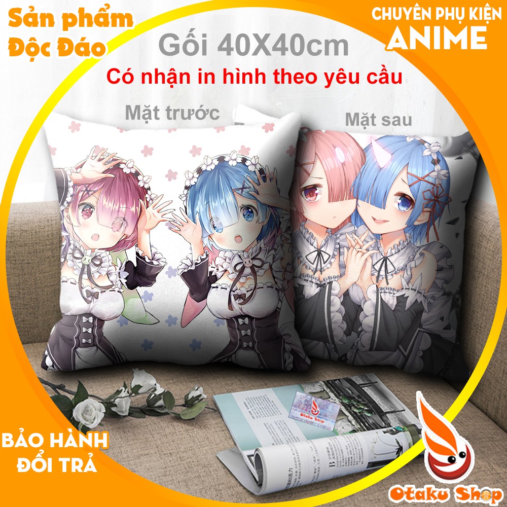 Áo gối, bao gối, gối tựa lưng, gối sofa 40x40 Re:Zero kara Hajimeru Isekai Seikatsu- Rem Ram - Otaku Shop