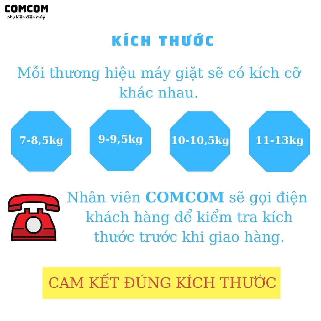 Lưu ý: các bạn chọn kích thước bao trùm máy giặt rộng hơn kích thước máy giặt để dễ lắp đặt.