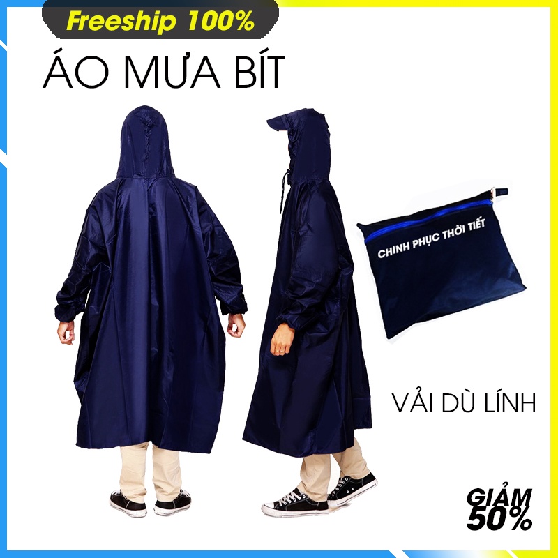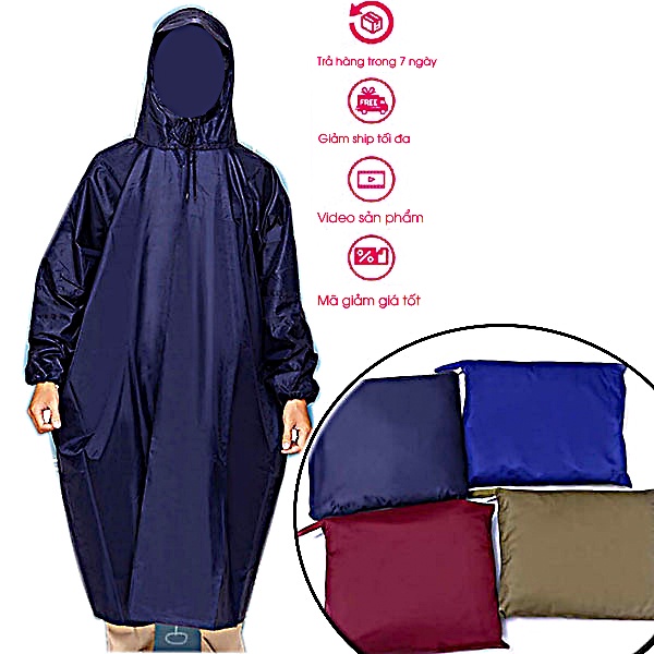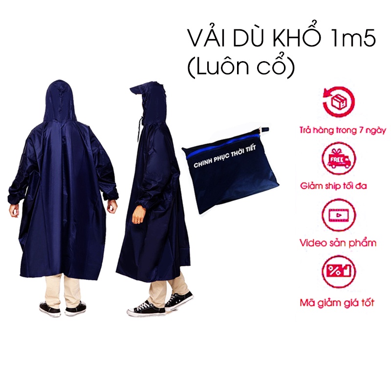 Áo mưa 1 người bít xung quanh - Chất liệu vải dù bền chắc đẹp - Size 1m5 luôn cổ - Nam nữ sử dụng được.