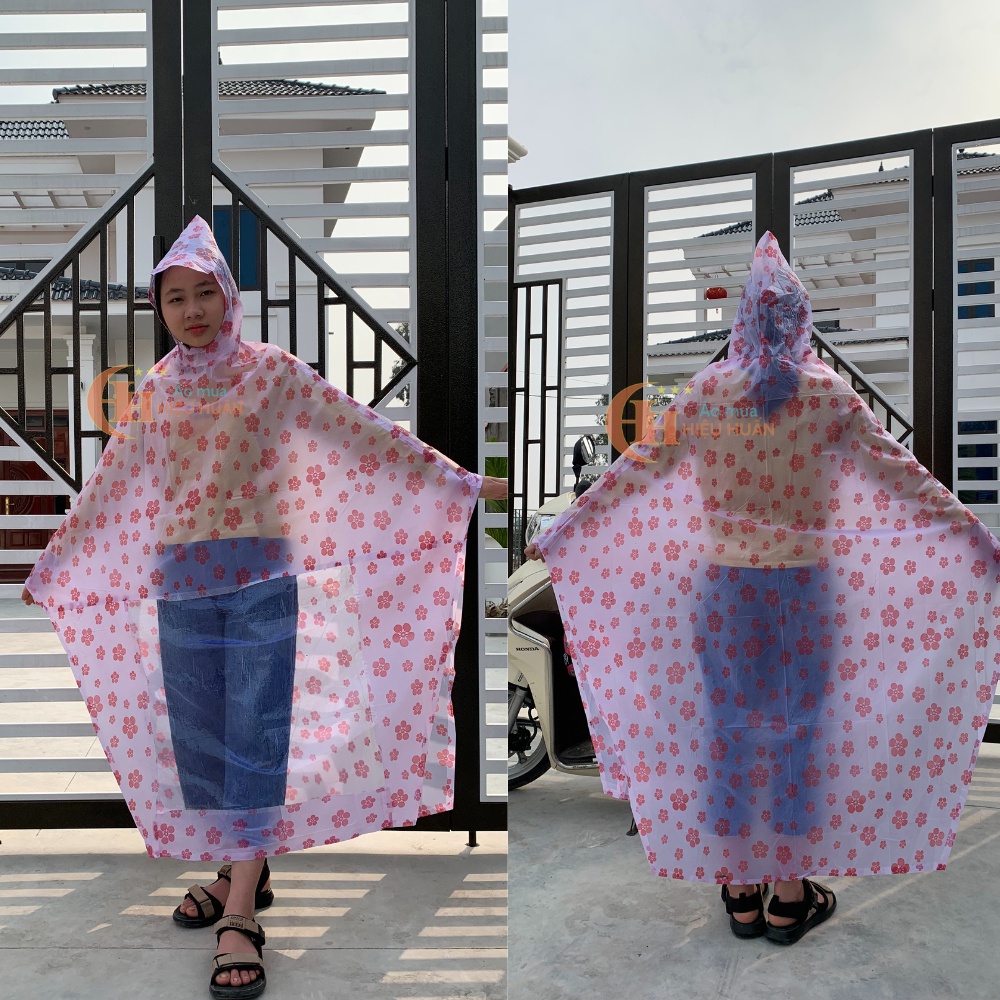 - Áo Mưa 1 Người Cánh Rơi Họa tiết chấm bi và hoa đào, nhựa PVC chống thấm được sản xuất từ nhựa PVC chống thấm tuyệt đối.