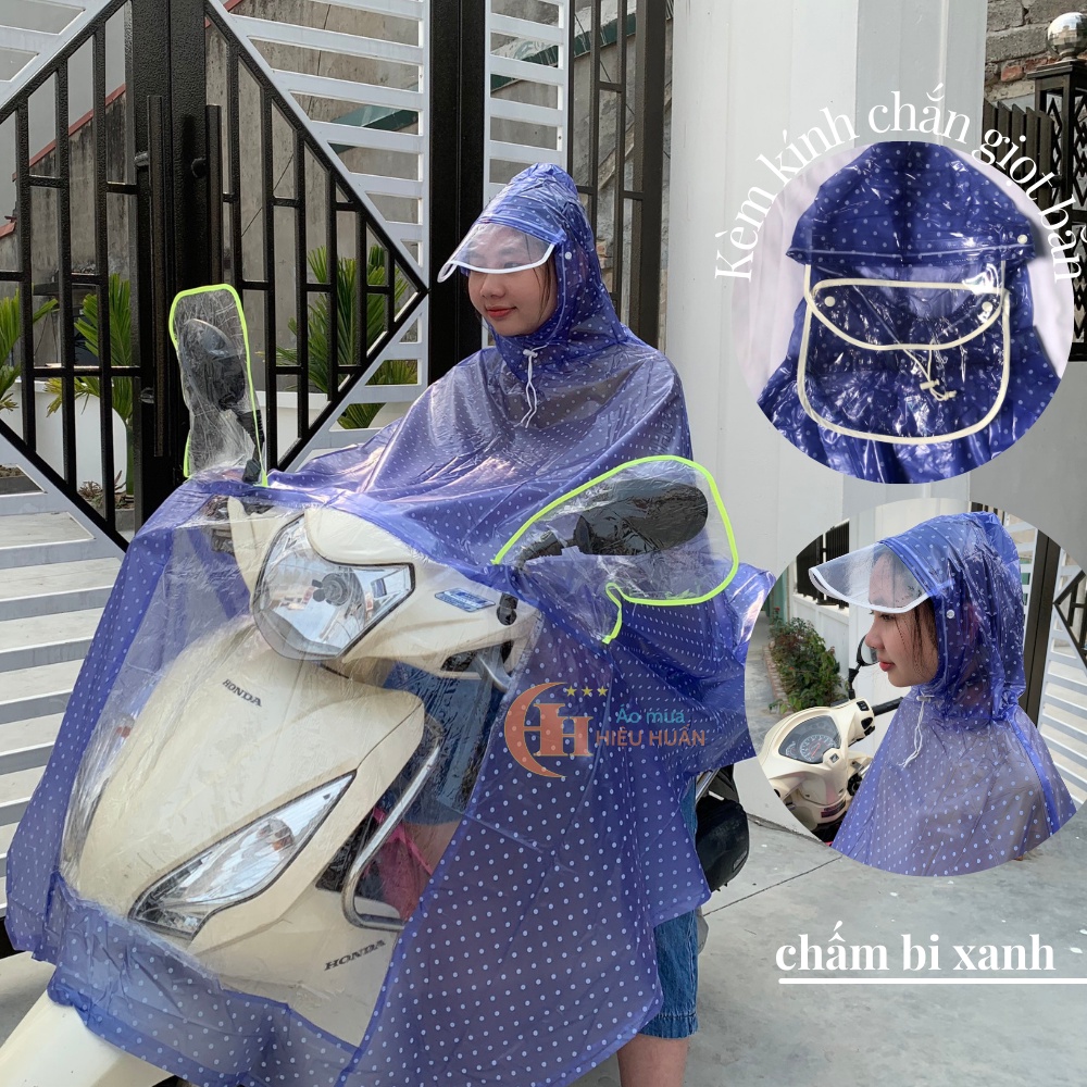 *Tên sản phẩm: Ao mưa 1 người tai thỏ, áo mưa cánh rơi choàng đại size lớn nhât.*Phân loại sản phẩm: - Áo mưa chấm bi xanh: loại 1 đầu và hai đầu.