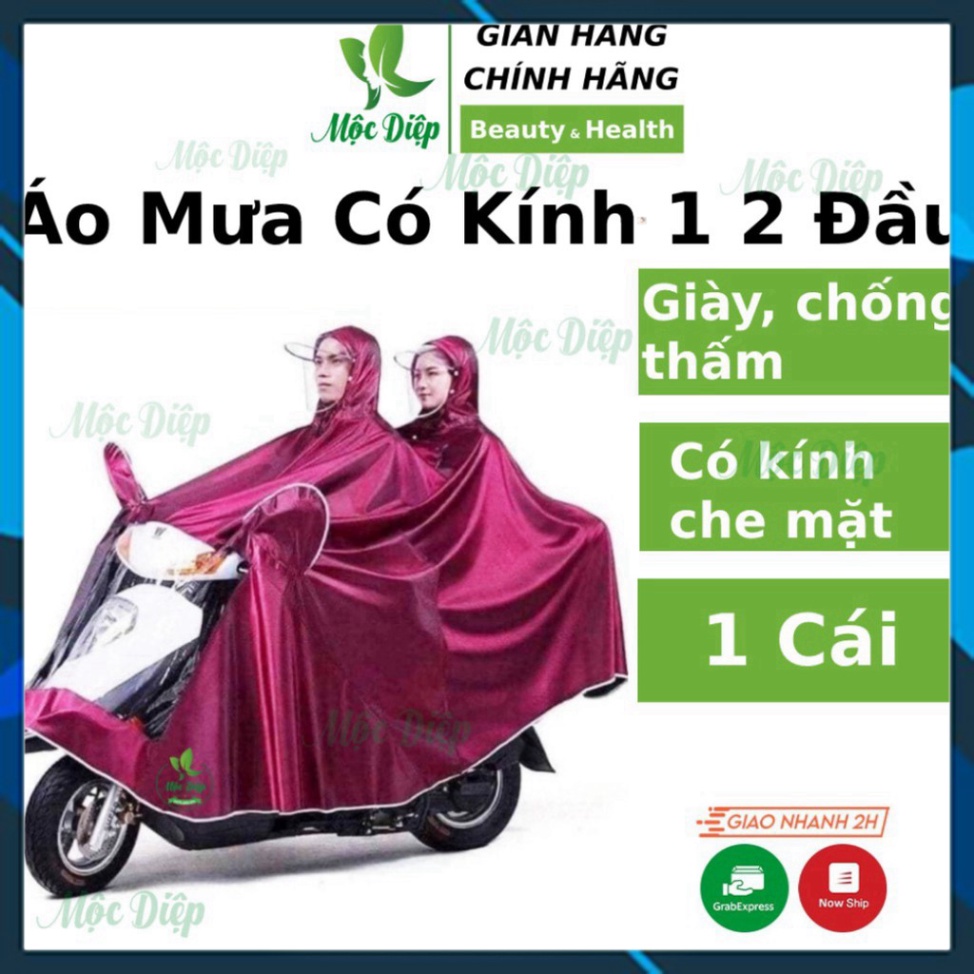 Áo mưa 2 đầu 1 người, loại trong suốt, loại phản quang có kính che mặt cánh rơi | (TT65)