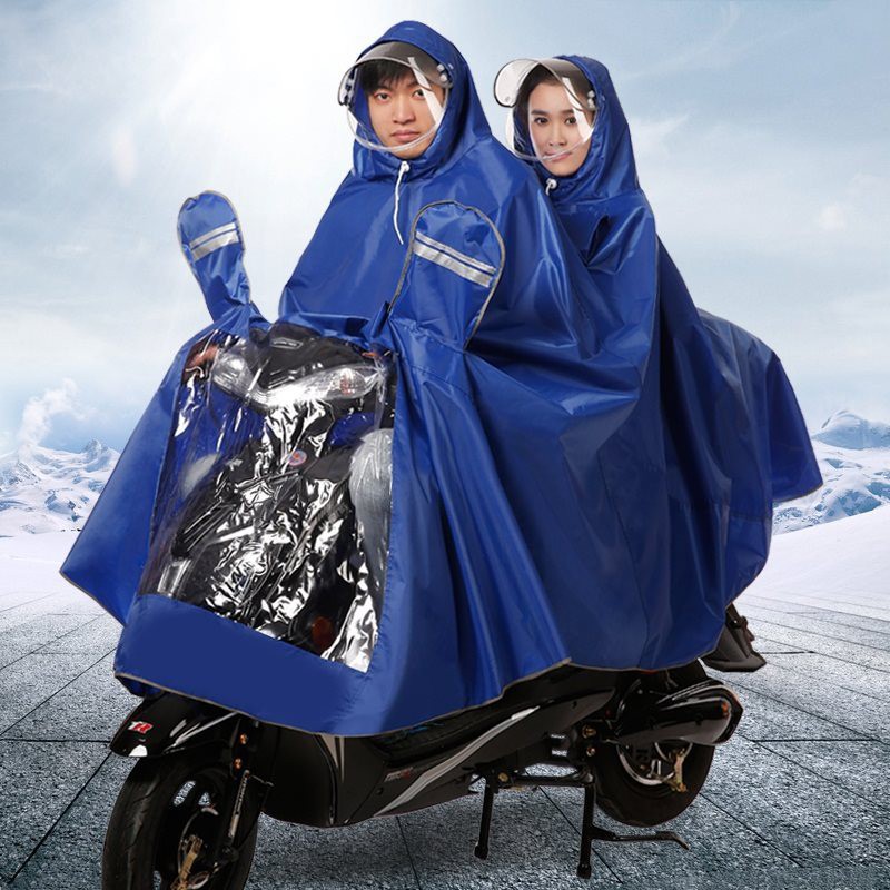 - Đặc biệt hơn, với áo mưa 2 đầu che mặt an toàn này, bạn sẽ không còn phải lo lắng áo mưa 2 đầu che khuất tầm ánh sáng của bạn khi lái xe vì áo mưa đôi được thiết kế có miếng nhựa kính trong để bạn có thể nhìn rõ công tơ mét của xe.