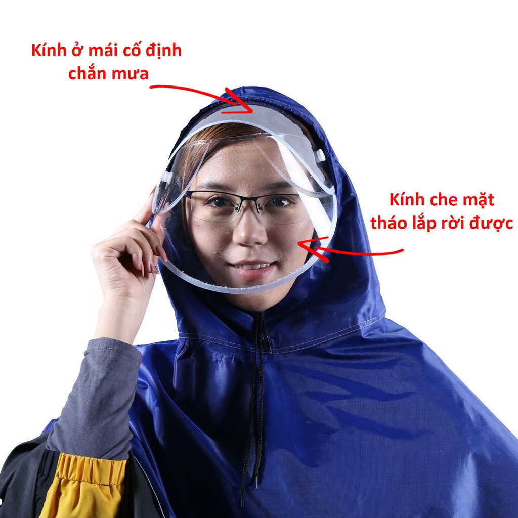 Giới thiệu Áo Mưa 2 Đầu Cánh Dơi Có Kính Chắn Nước Che Mặt Trùm Gương Đôi Phản Quang Vải Dù Cao Cấp Thời Trang Nam Nữ Chống Thấm