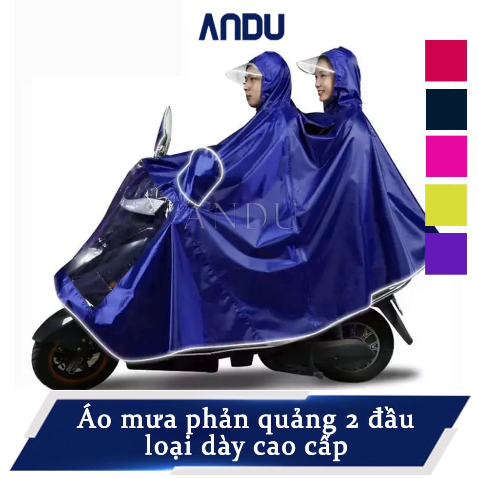 Áo Mưa 2 Đầu Phản Quang Vải Dù Ép PVC Dày Dặn Chống Rách Có Kính Che Cao Cấp