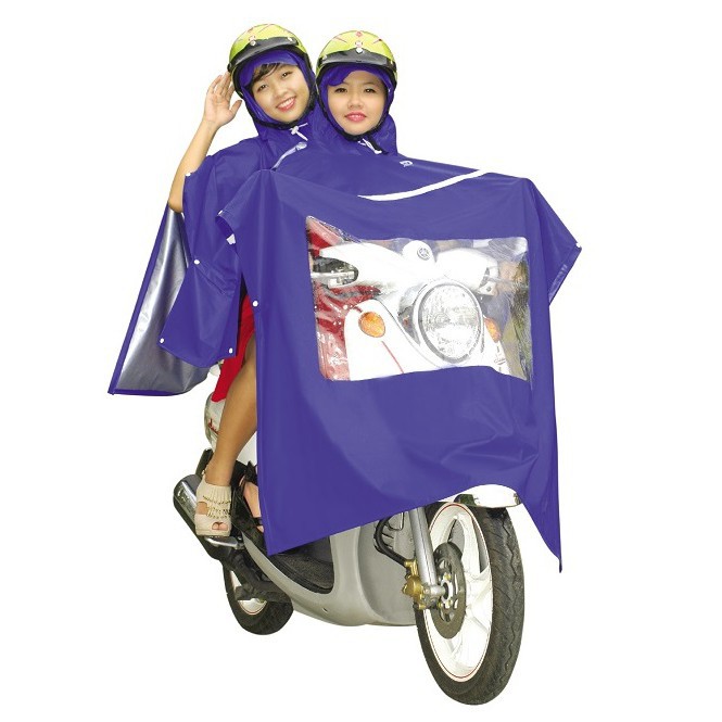 Đây chính là chiếc áo mưa vô cùng tiện lợi cho gia đình, cặp đôi hay những ai thường xuyên chở thêm người khi ra đường. Với thiết kế 2 đầu độc đáo, đặc biệt phần vạt trước của áo mưa làm bằng nhựa trong suốt giúp người sử dụng an tâm tuyệt đối khi đi mưa vào buổi tối.các màu xanh, đỏ, tím ,