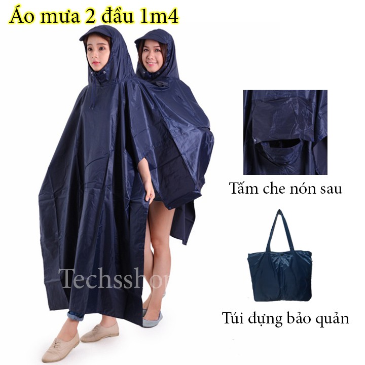 Áo Mưa 2 Đầu Vải Dù Cao Cấp 1m4 Size 3XL - Áo Mưa Đi Xe Máy Cho Người Lớn Kèm Túi Đựng Bảo Quản