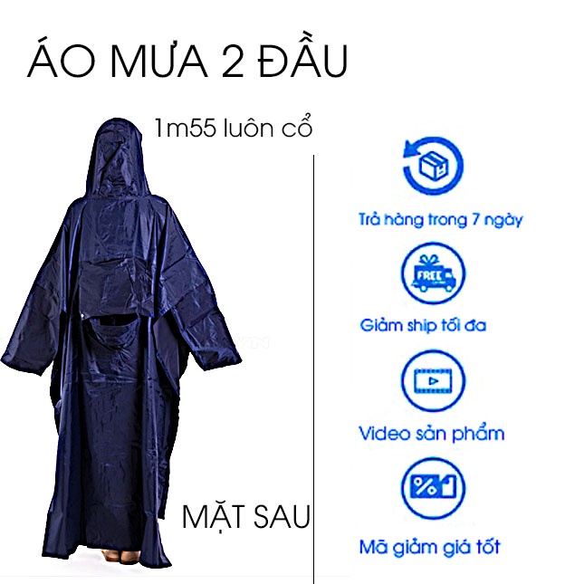 Áo mưa 2 đầu vải dù cao cấp Size 1m4 Chống Thấm tuyệt đối , Nam Nữ đều đều mặc được.