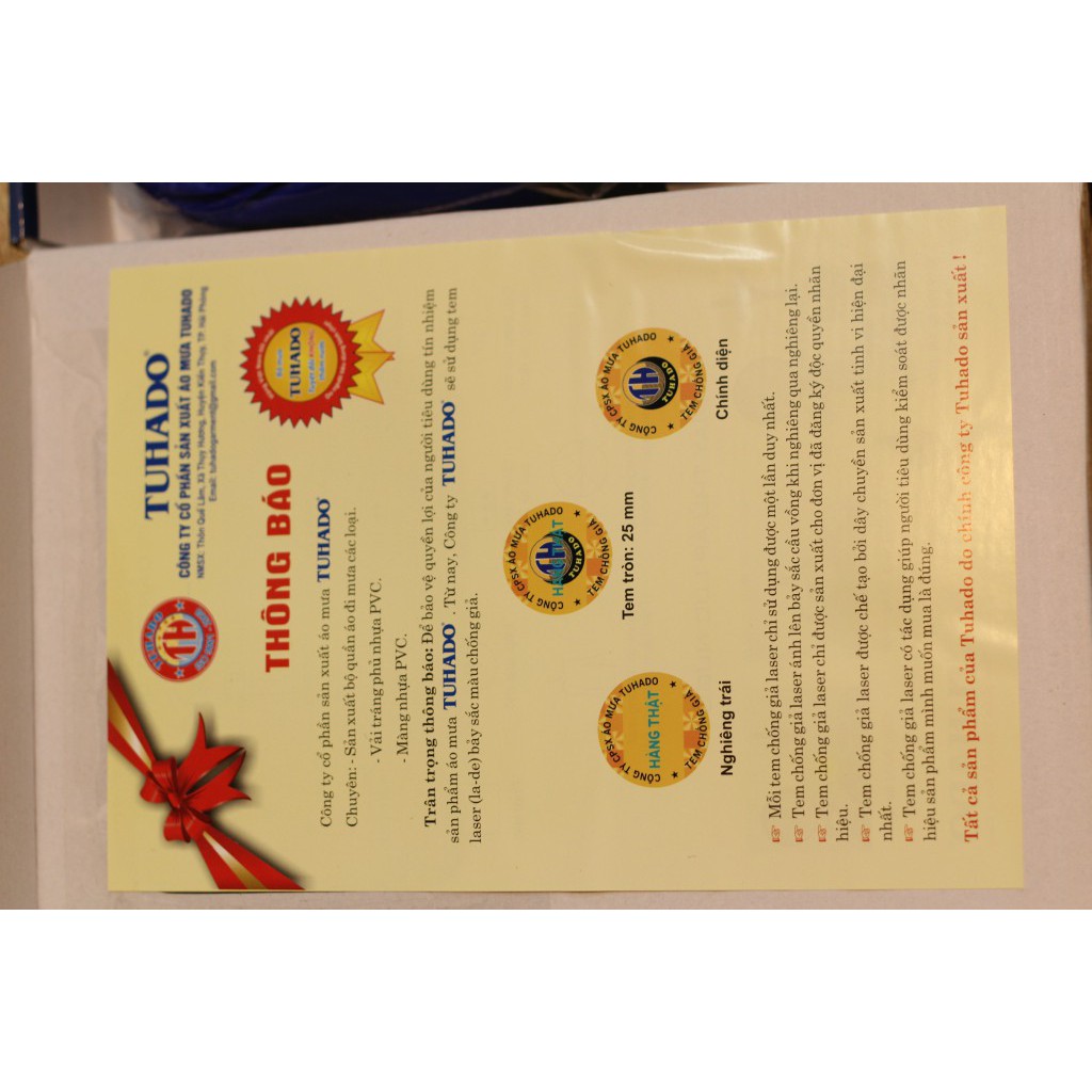 không như những loại rẻ tiền như Thành Long, Thủy Sơn áo mưa TUHADO là thương hiệu chắc chắn hẳn chất lượng như Rando. Hàng sản xuất tại công ty hyphen ở Hải Phòng. hơn 215 sợi trên 1cm2 trong khi các loại rẻ chỉ tầm <170 sợiGiá vSXP